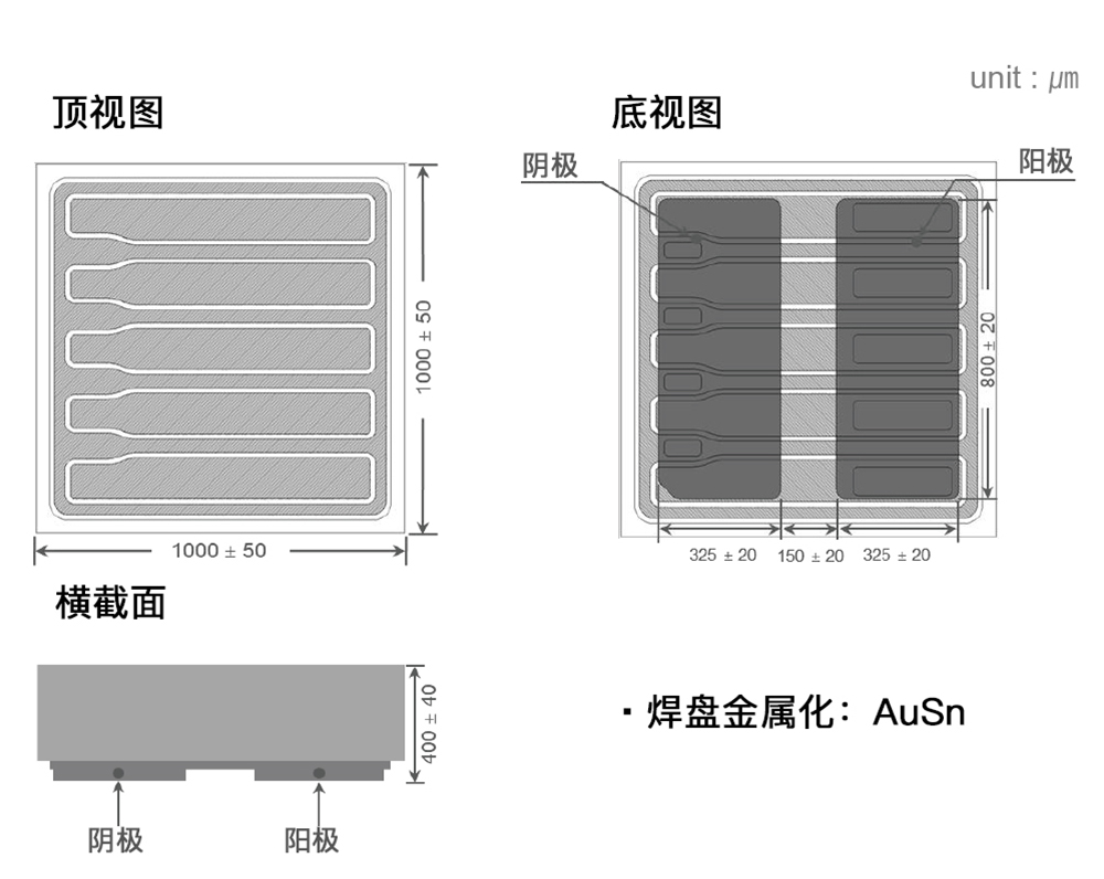 | 峰值波长 | λP | IF=350mA | nm | 300 | 308 | 315 |